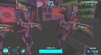 The Debuggers takes place in the future, in a cyberpunk world that is falling apart. A powerful AI system has taken control and its robot army is attacking humans. The cities are full of danger, with broken streets, neon lights, and chaos everywhere.